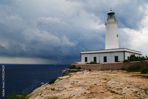 © Ralph, Fototapeta premium Far de la Mola, lighthouse on the cliffs of Formentera an approaching storm.