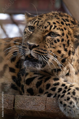 Fototapeta premium Far Eastern leopard, or Amur leopard (lat. Panthera pardus orientalis).