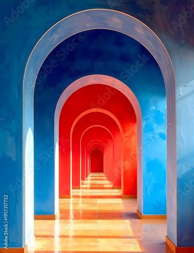 © SG- design, Fototapeta premium Farbenträchtige Torbögen eines Korridors .