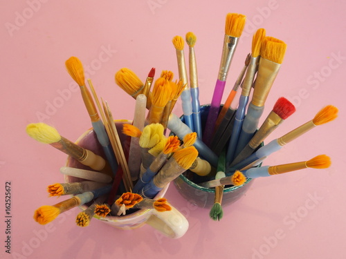 © finecki, Fototapeta premium Farbige Pinsel im Wasserglas