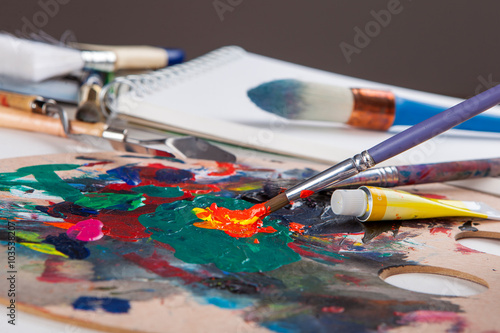 Obraz premium Farbpalette mit Pinsel