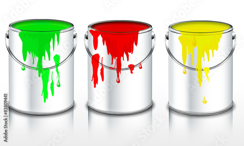 Naklejka premium Farbtöpfe gelb, rot, grün freigestellt