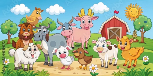 © Sirinporn, Naklejka premium Farm animal illustrations for kids to color