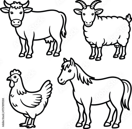 Fototapeta premium Farm animal illustrations silhouette Bundle goat chicken