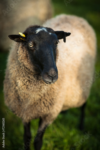 Fototapeta premium Farm animals: black-head sheeps grazing on a lovely green pastur