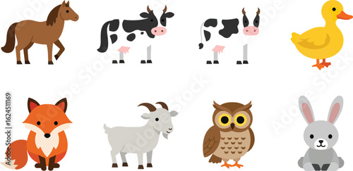 © Andriyani, Fototapeta premium Farm animals flat cartoon illustration