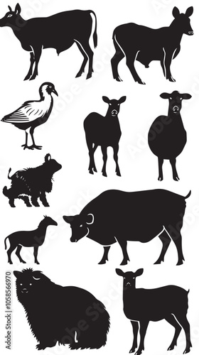 © Vector Stock, Fototapeta premium Farm animals vector silhouettes