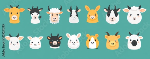 Obraz premium Farm animals with cute faces depicted in pixel art on a teal-colored background