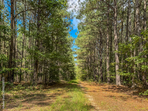 Fototapeta premium Farm back road through pine forest