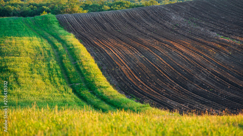© markborbely, Fototapeta premium Farm land with path and wheat fields