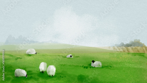 © Rawpixel.com, Fototapeta premium Farm landscape desktop wallpaper, watercolor HD background