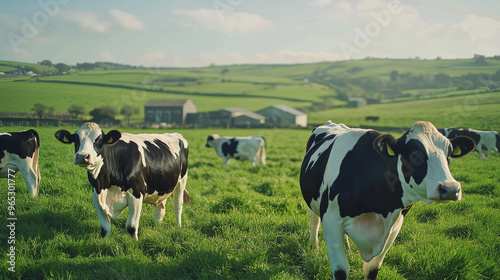 Fototapeta premium “Farm Life: Dairy Cows Enjoying the Fields”