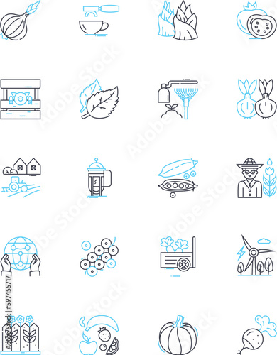 Naklejka premium Farm stand linear icons set. Produce, Fresh, Organic, Local, Vegetables,...