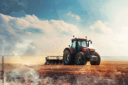 © Ali, Fototapeta premium Farm worker driving tractor prepares for harvest