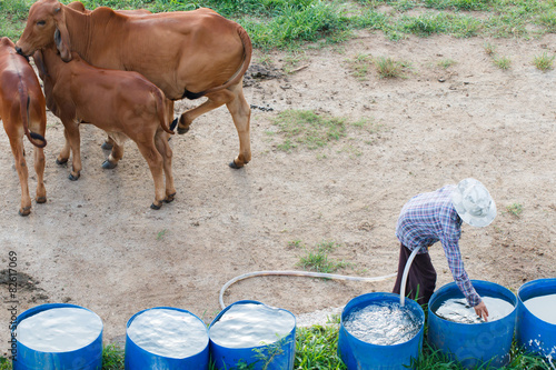 Fototapeta premium Farmer and cow