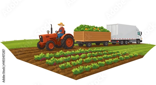 © Awan, Obraz premium Farmer Driving Tractor on Farm Harvesting Crops in Field