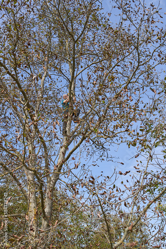 © Xalanx, Obraz premium Farmer harvesting walnuts