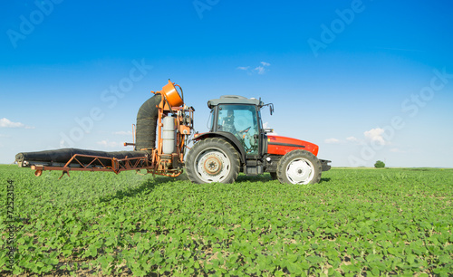 © oticki, Obraz premium Farmer in tractor spraying soybeans