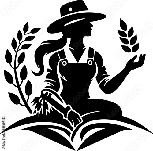 © Team Toucan, Fototapeta premium farmer stylized portrait, organic products logo template