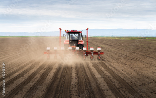 © Dusan Kostic, Fototapeta premium Farmer with tractor seeding crops at field