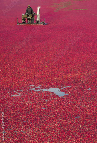 © Christopher Boswell, Obraz premium Farmer Working Cranberry Bog At Produce Harvest Time