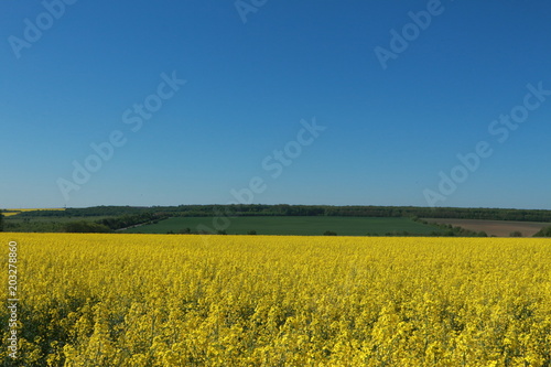 © Ihor, Obraz premium farmers agricultural fields planted with yellow canola rapeseed