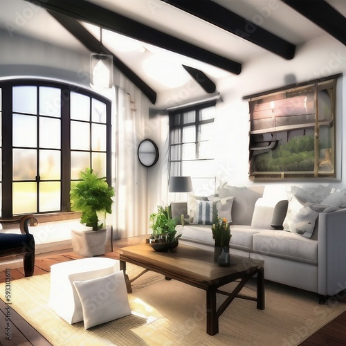 Fototapeta premium Farmhouse Living Room Interior, Generative AI
