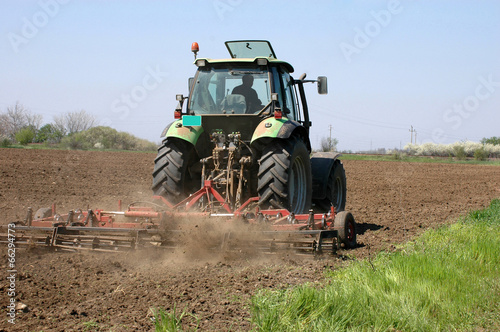 Obraz premium Farming a field with a tractor