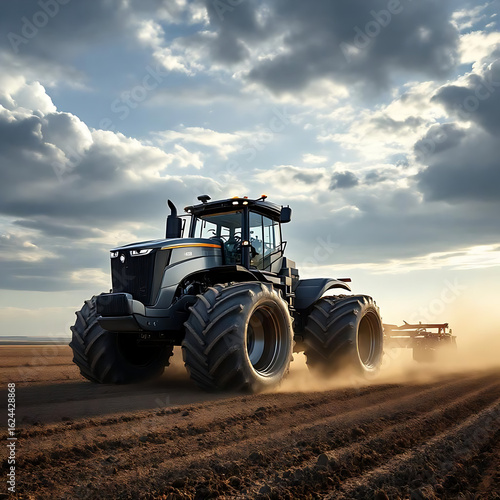 © David, Fototapeta premium Farming Tractor in Action. Powerful Tractor in the Field