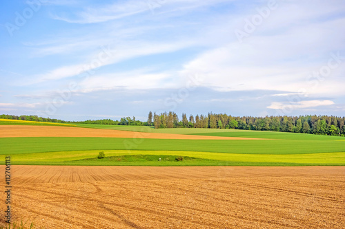 © aldorado, Obraz premium Farmland - brown fields, green meadow
