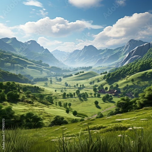 © Adobe Contributor, Fototapeta premium Farmland in a valley between mountains