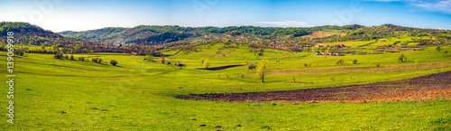 © Roberto Sorin, Fototapeta premium Farmland in spring colors. Valea Plopului village, Prahova county, Romania