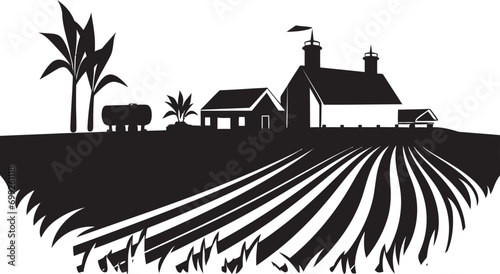 © BABBAN, Fototapeta premium Farmstead Essence Black Vector Emblem Homestead Tranquility Farmhouse Icon