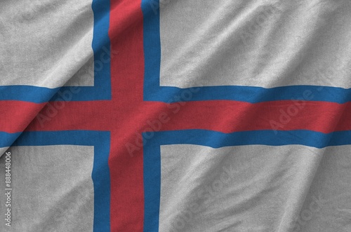 © mehaniq41, Fototapeta premium Faroe islands flag depicted on folded wavy fabric of old cloth close up