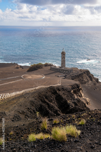 © Lizaveta, Fototapeta premium Farol da Ponta dos Capelinhos lighthouse at Faial island of the Azores, Portugal. Former beacon on the Atlantic Ocean coast. Eruption of Capelinhos volcano.