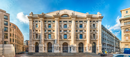 © marcorubino, Fototapeta premium Fasada Palazzo Mezzanotte, budynek giełdy w Mediolanie we Włoszech