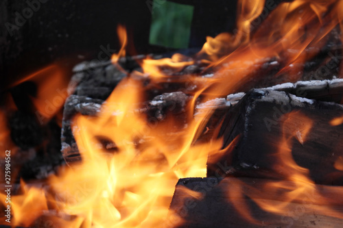 © Mikhail, Fototapeta premium Fascinating orange flame of a fire - the element on which you can watch forever.