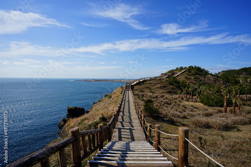 © SooHyun, Obraz premium fascinating seascape with walkway and clouds