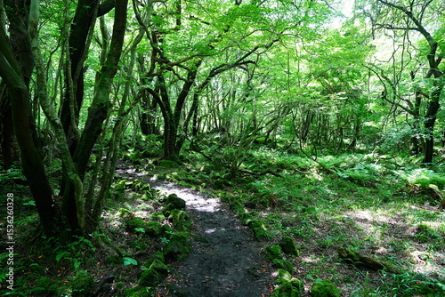 © SooHyun, Obraz premium fascinating spring forest with old trees and path
