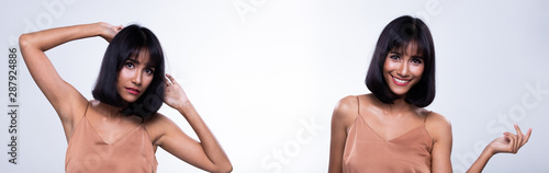 Naklejka premium Fashion arab Woman Tan skin black hair beautiful