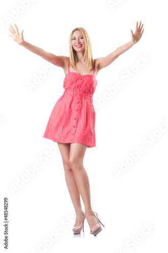 Fototapeta premium Fashion concept with tall model on white