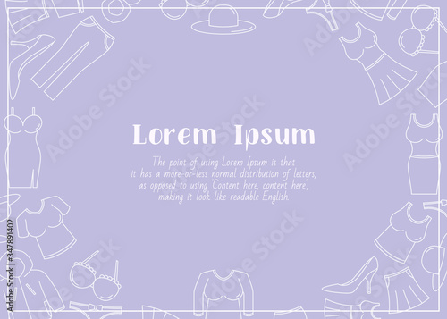 © Pavel-reDesign, Naklejka premium Fashion - horizontal card with text and vector outline illustrations of women's clothing for graphic design