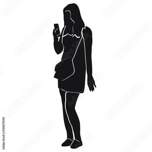 Fototapeta premium fashion; lady; standing; people; black; vector; design; modern; isolated;...
