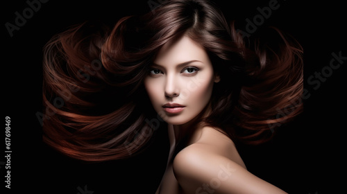 Fototapeta premium Fashion mixed race young woman brunette ginger waving hair coiffure advertising beauty marketing illustration. Generative Ai