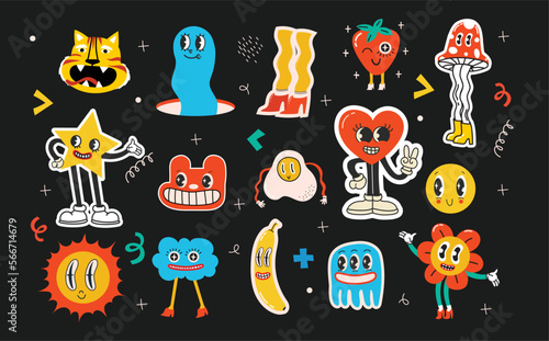 © virinaflora, Fototapeta premium Fashion patch badges with lips, hearts, speech bubbles and other elements. Vector illustration set of stickers, pins, patches in cartoon 80s-90s style.