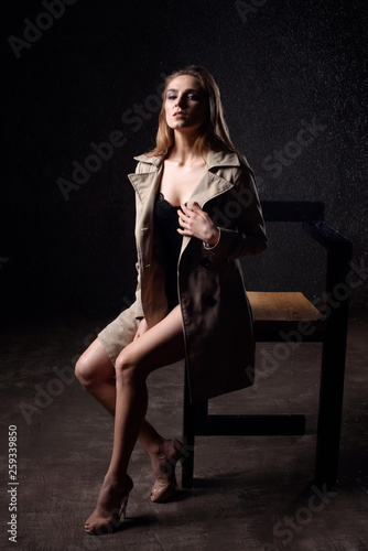 Fototapeta premium fashion portrait of young sexy wet woman siting on the chair