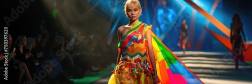 Fototapeta premium Fashion Show, New Collection Demonstration, Unusual Clothes, Bright Outfit,...