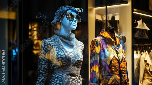 Fototapeta premium Fashion store mannequins dressed in luxury apparel