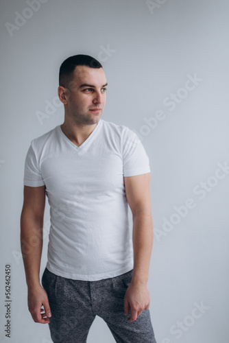 © Andreshkova Nastya, Fototapeta premium Fashion stylish male portrait. Young handsome man in studio