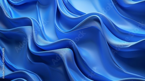 Obraz premium Fashion wallpaper with wavy ruffles, blue cloth macro, 3D render, abstract...
